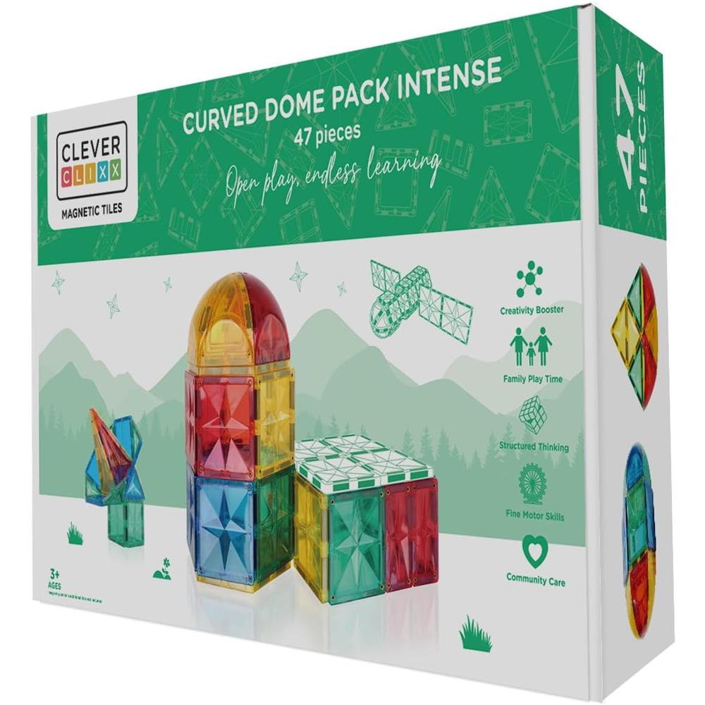 Cleverclixx Kleiner Kuppel-Bausatz Knallfarben 34 Teile, gebogene Magnetbausteine, abwechslungsreiche Form