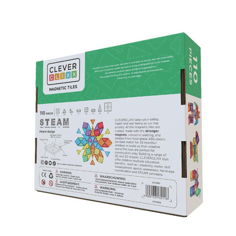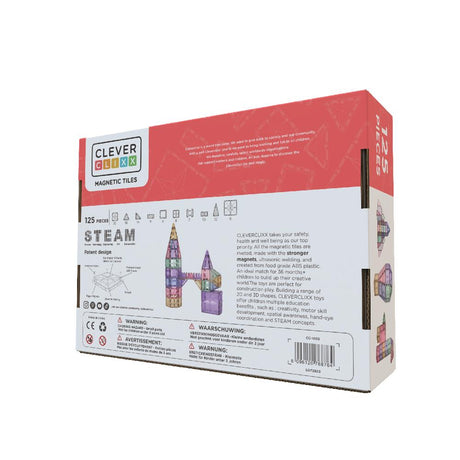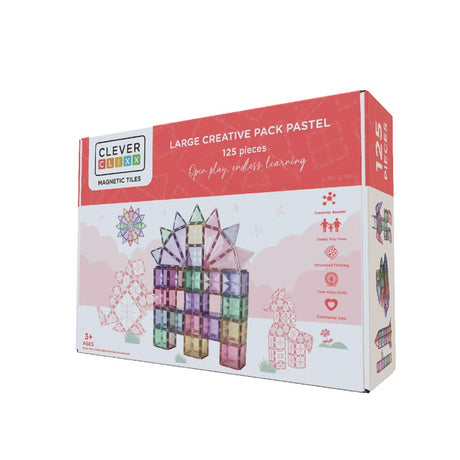 Cleverclixx Großer Kreativ-Bausatz in Pastellfarben 125 Teile, Magnetfliesen, Magnetspielzeug