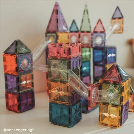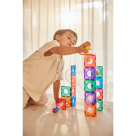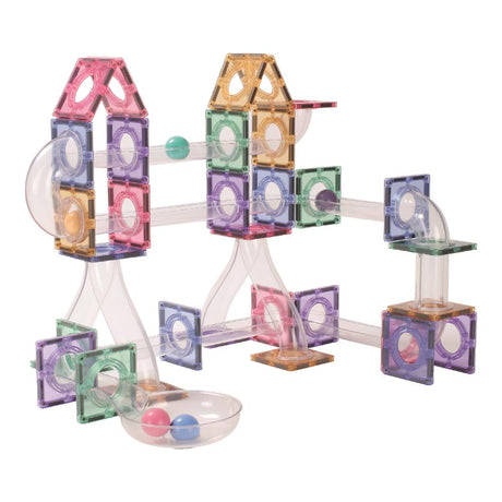 Cleverclixx Kugelbahn-Kreativ-Bausatz in Pastellfarben 70 Teile, Murmelbahn, Magnetspielzeug