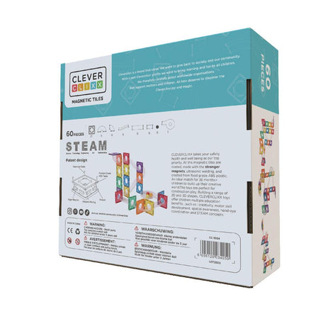Cleverclixx Original-Bausatz in Knallfarben 60 Teile, langlebiges Magnetspielzeug, Magnetfliesen