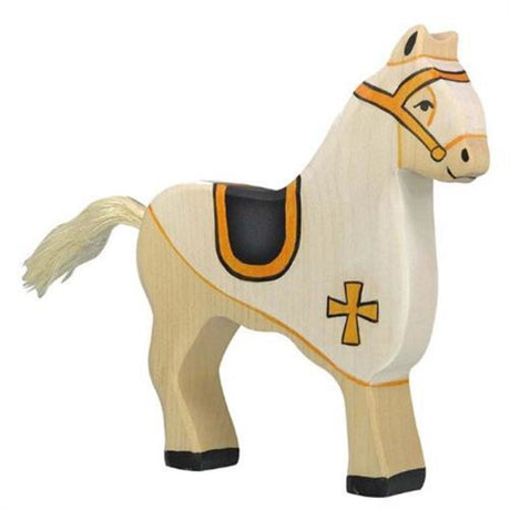 Holztiger Holzfigur - Turnierpferd, weiß, Holzspielzeug, ab 3 Jahren