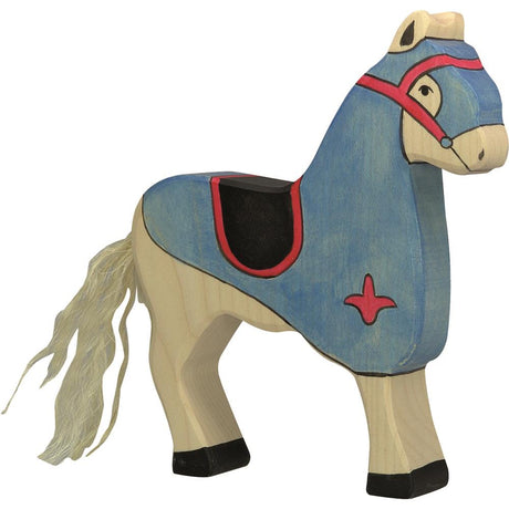 Holztiger Holzfigur - Turnierpferd, blau, Holzspielzeug, ab 3 Jahren