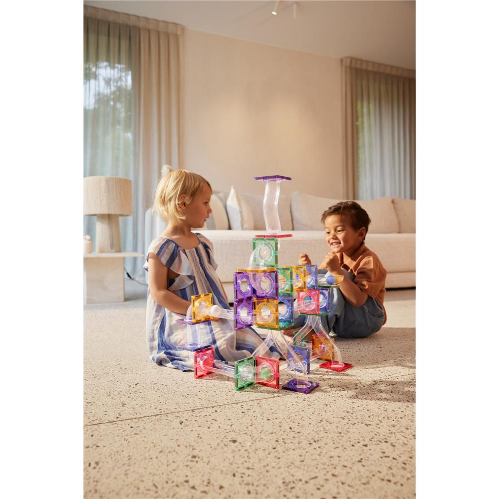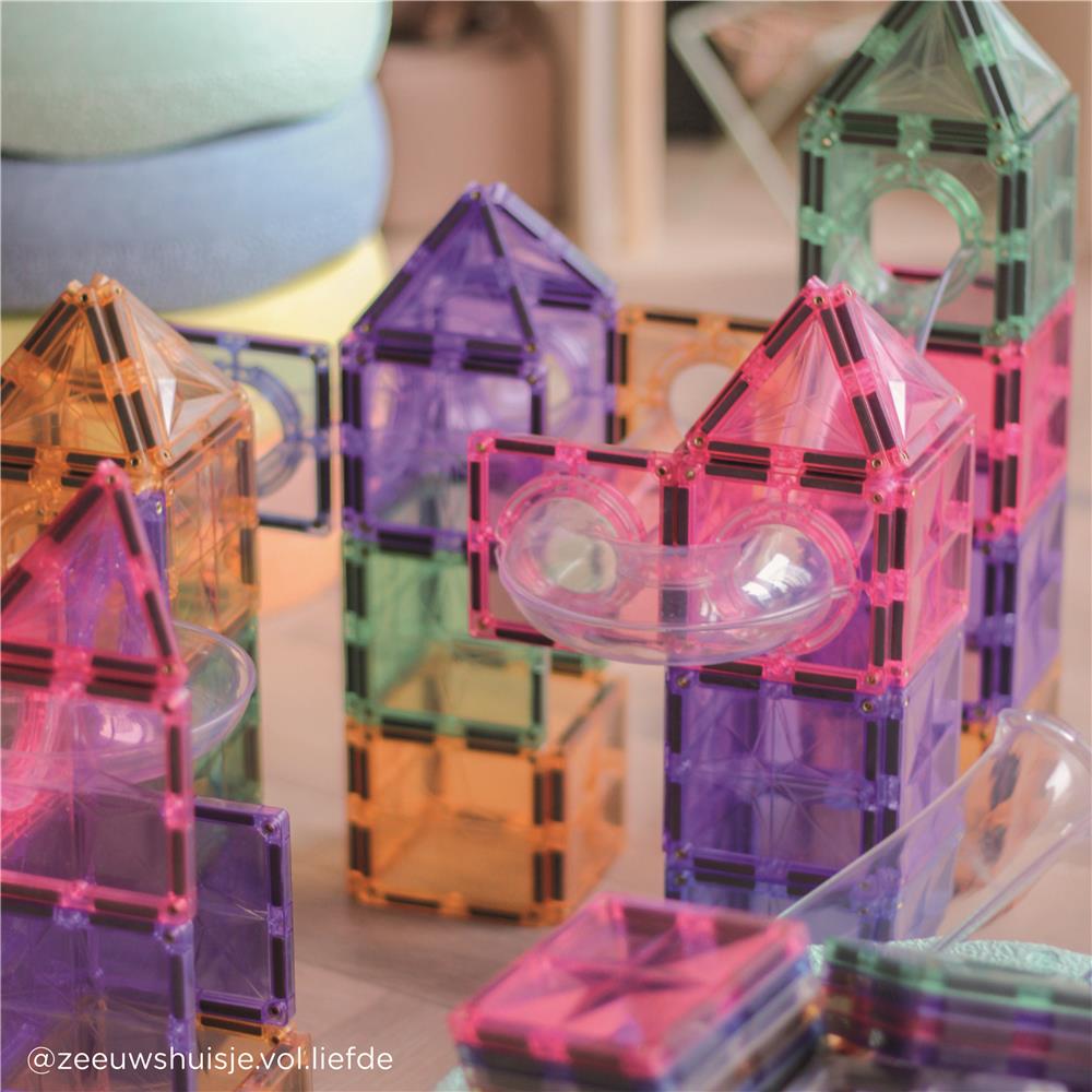 Cleverclixx Kugelbahn-Bausatz Clever in Pastellfarben 110 Teile, Murmelbahn, Magnetfliesen, Magnetbausteine