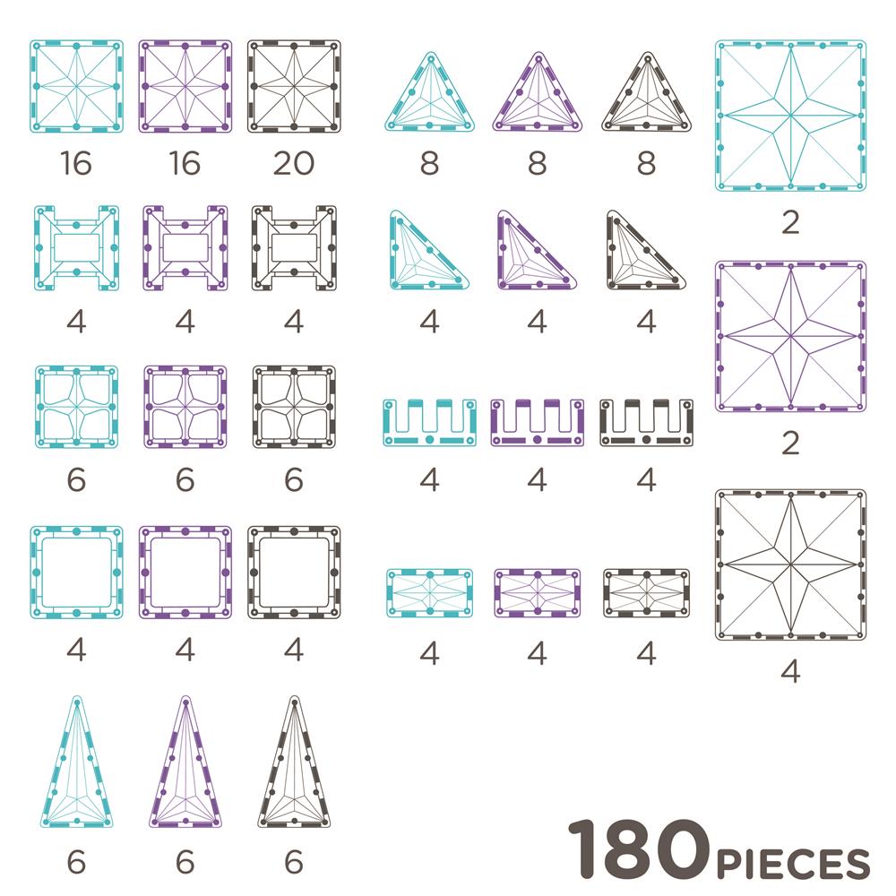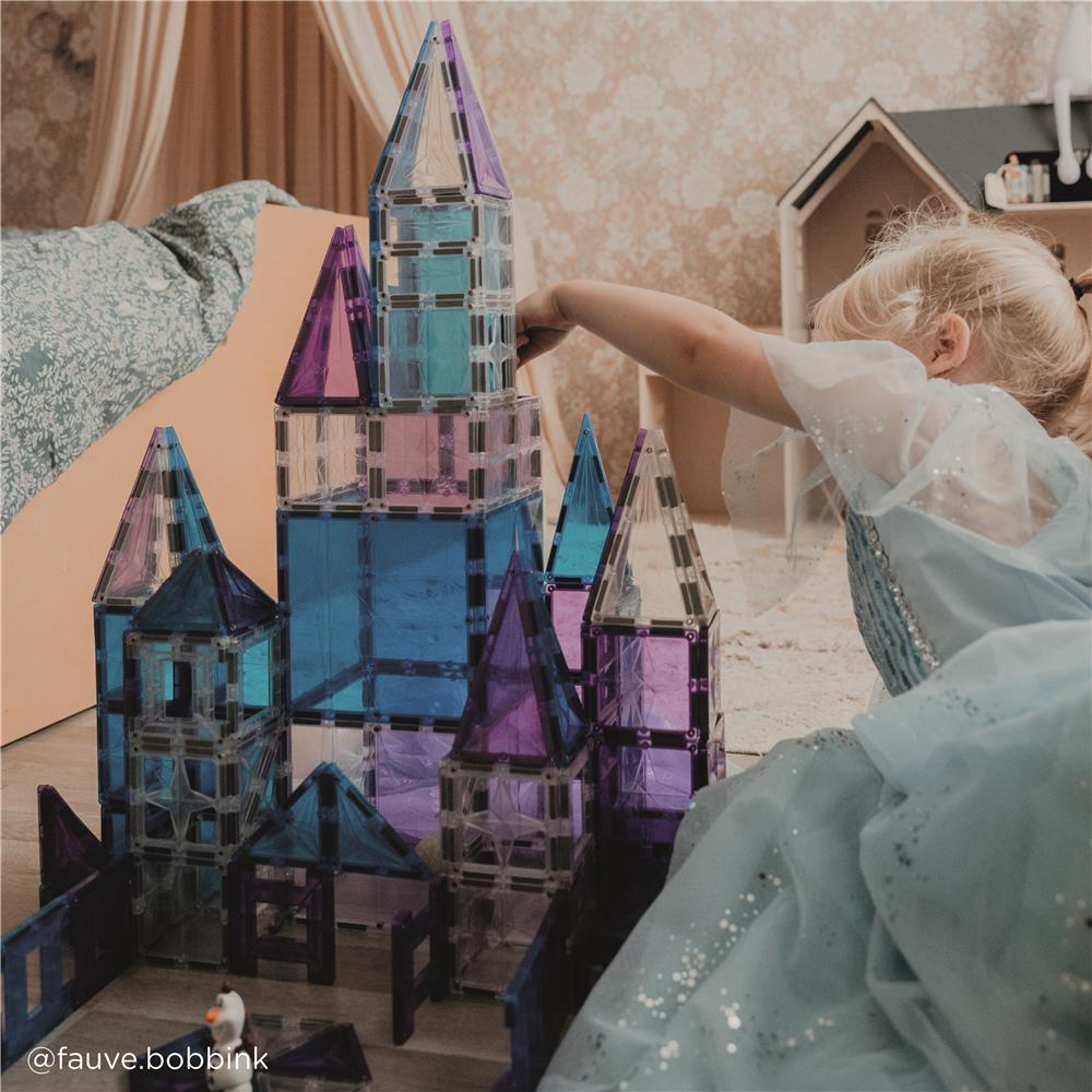 - Mit 180 Teilen in kühlen Weiß-, Blau- und Violetttönen entstehen fantasievolle Bauwerke, die Kinder zum Träumen und Entdecken einladen.