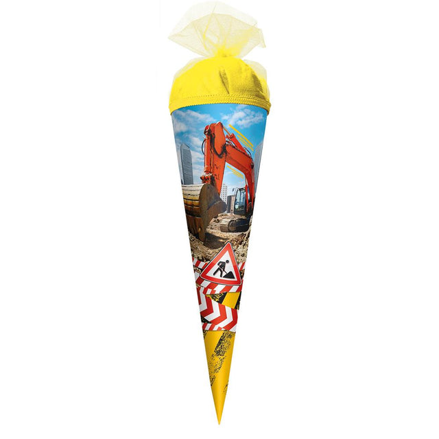 Roth Schultüte Achtung Bagger, 22cm, rund, Tüllverschluss