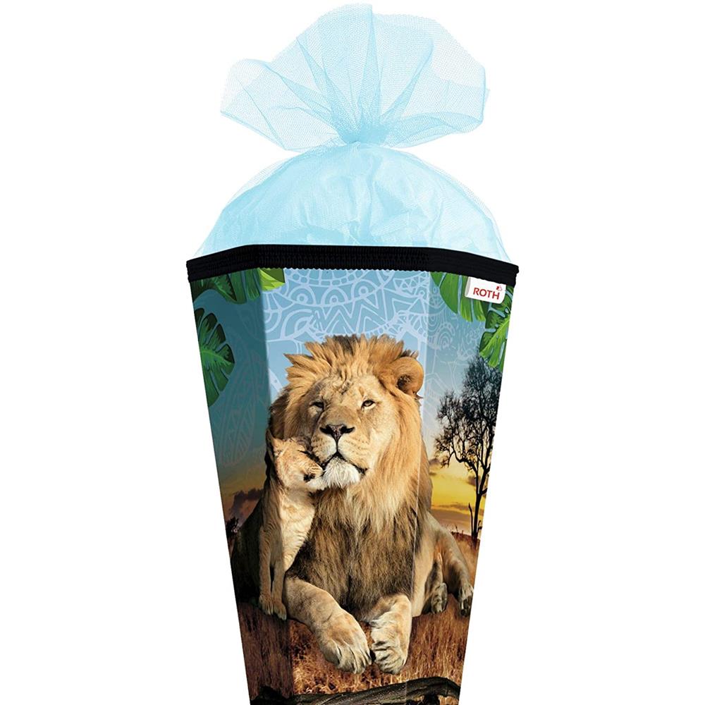 Roth Schultüte Löwe, 85cm, eckig, Rot(h)-Spitze, Tüllverschluss