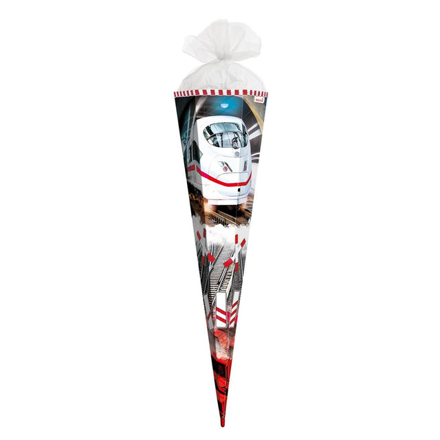 Roth Schultüte Schnellzug, 85cm, eckig, Rot(h)-Spitze, Tüllverschluss