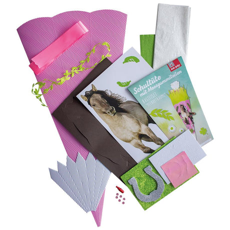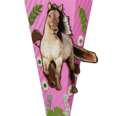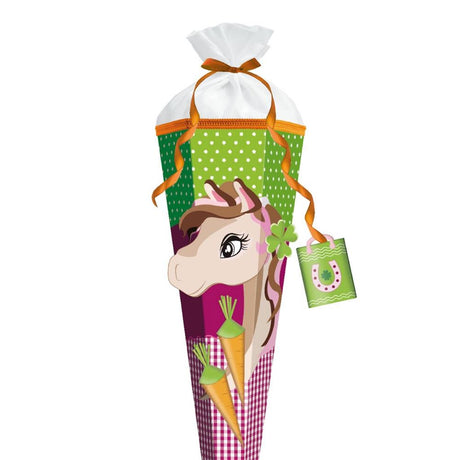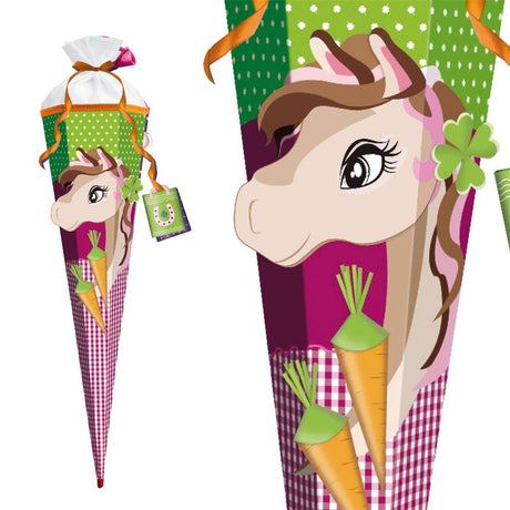 Roth Schultüte-Bastelset, Pferd, 68cm, eckig, Rot(h)-Spitze, Kreppverschluss
