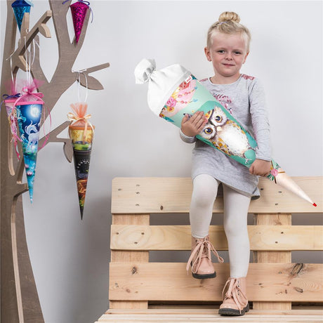 Roth Schultüte Eule Lieselotte, 70cm, rund, Rot(h)-Spitze, Filzverschluss