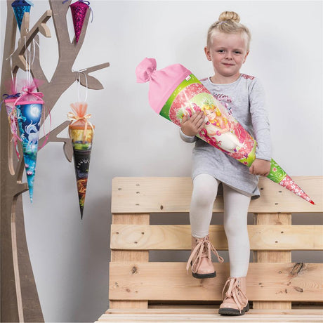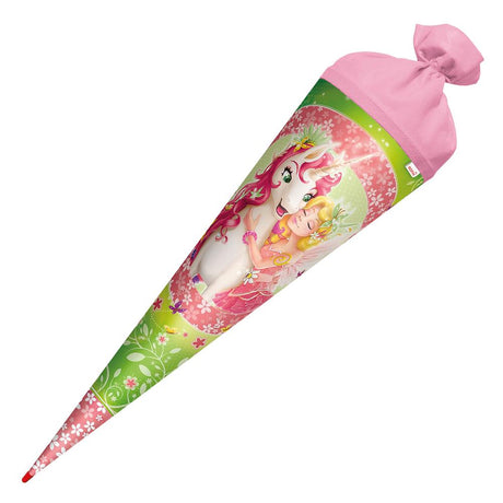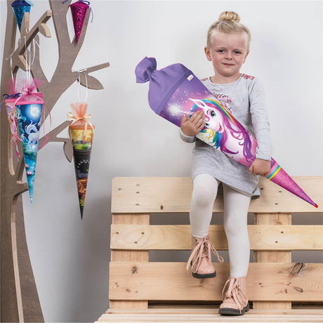 Roth Schultüte Magische Einhornreiterin, 70cm, rund, Rot(h)-Spitze, Filzverschluss, Glitter