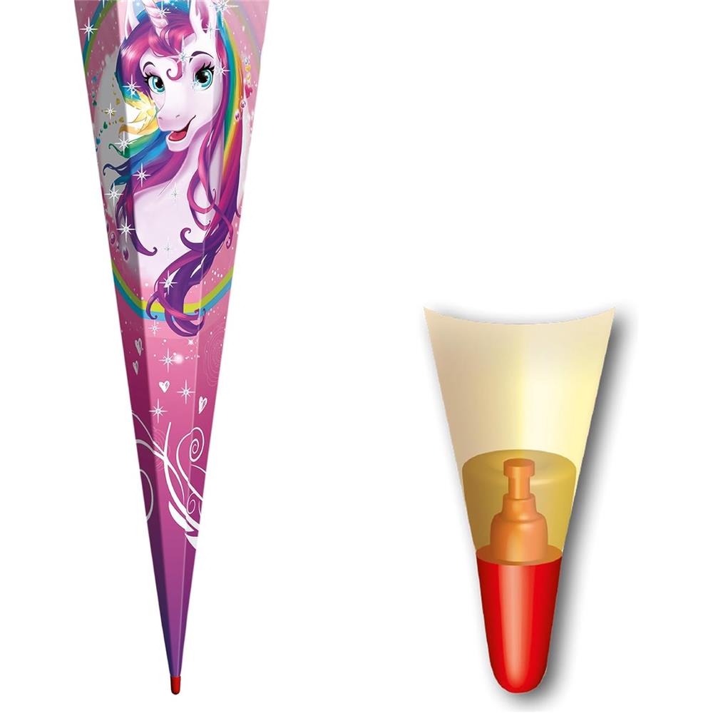 Roth Schultüte 85 cm Einhornportrait mit Glitter – eckig, Tüllverschluss, Rot(h)-Spitze
