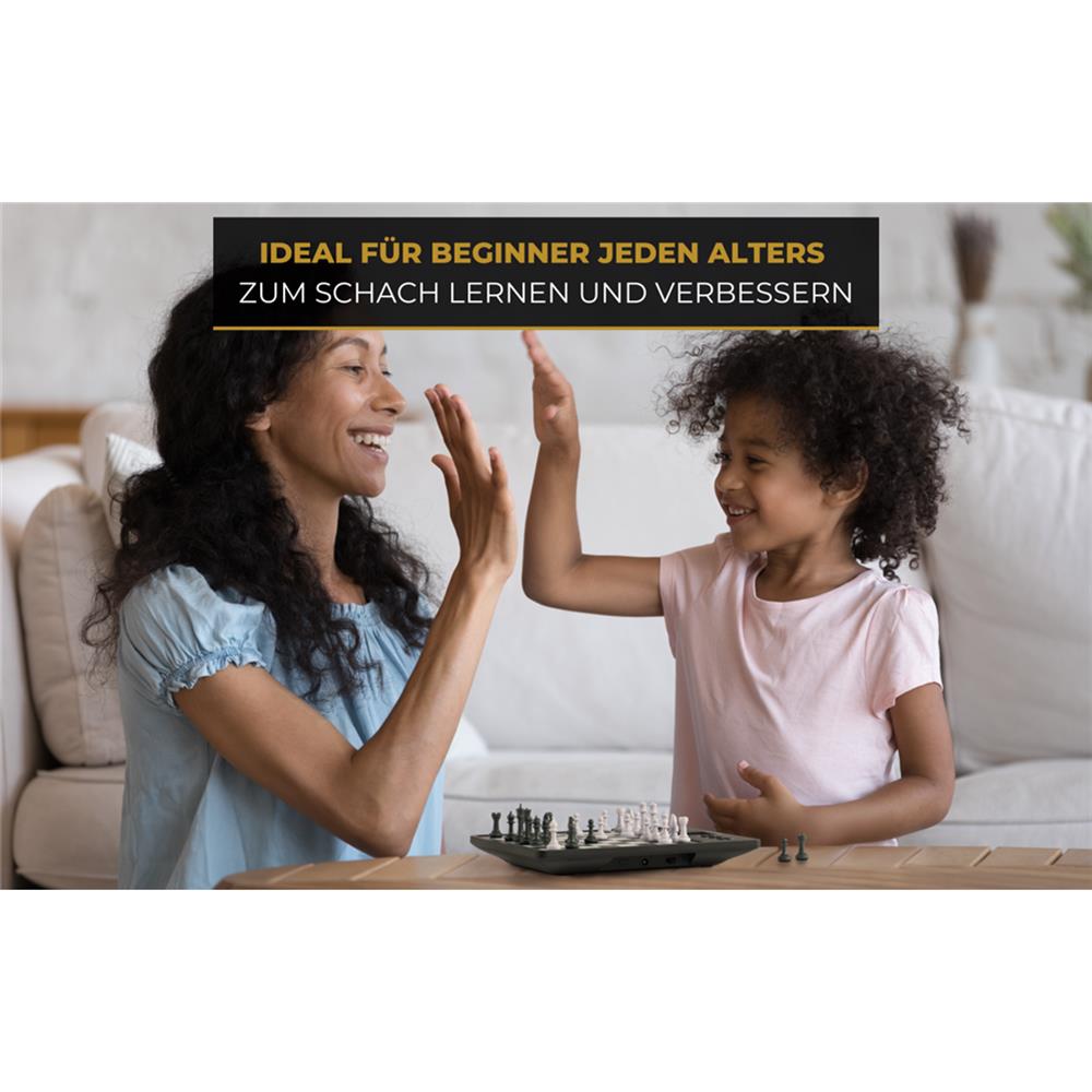 Mit 100 spannenden Übungsaufgaben, Mini-Spielen und Analysefunktionen kannst du selbstständig trainieren und deine Fähigkeiten ausbauen. Speichere bis zu drei Partien, setze sie später fort oder untersuche eigene Stellungen. Magnetische Figuren, kompakte Maße und geringes Gewicht machen den ChessChampion 2.0 perfekt für unterwegs. Hochwertige Materialien sorgen für Langlebigkeit – ideal für Kinder und Erwachsene von 6 bis 99 Jahren.