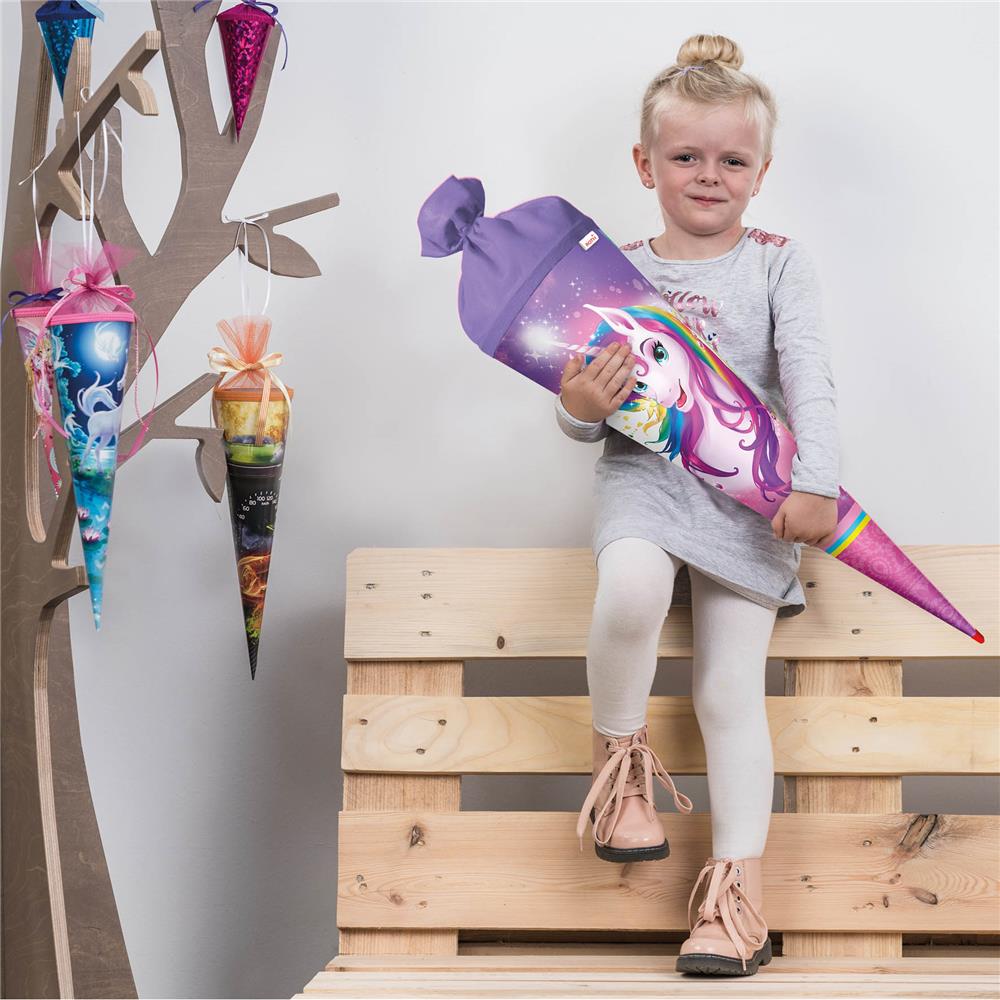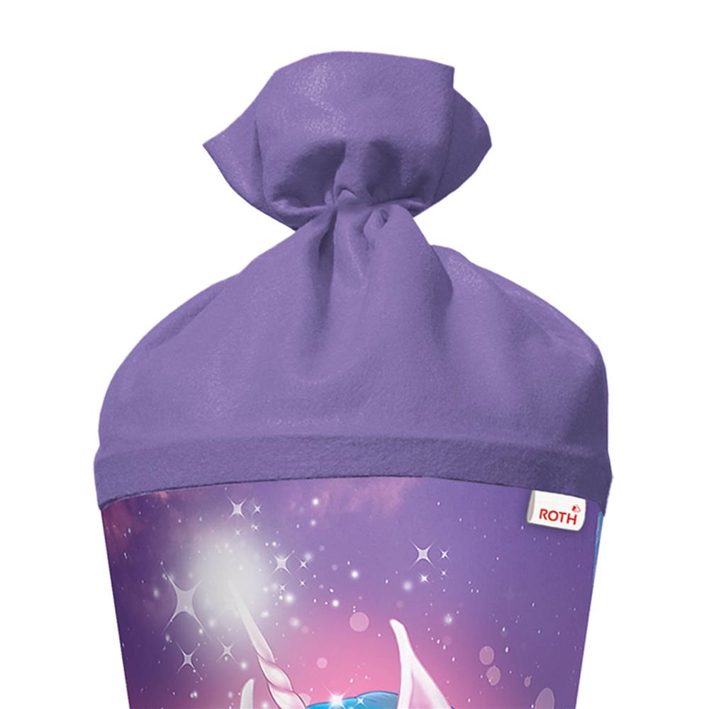 Die Roth "Einhornportrait" Schultüte in der Länge von 70 cm ist das perfekte Accessoire für einen märchenhaften Schulstart! Mit ihrer runden Form und dem bezaubernden Einhorn-Motiv ist sie speziell für kleine Mädchen ein echter Hingucker. Der lilafarbige Filzverschluss verleiht der Schultüte einen charmanten Abschluss und rundet das Design harmonisch ab. Die patentierte Rot(h)-Spitze aus nachhaltiger Holzverarbeitung steht für höchste Qualität und Langlebigkeit.