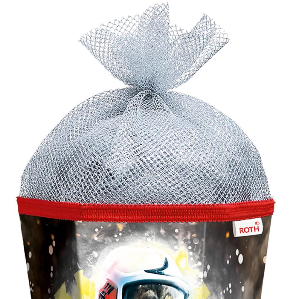 Roth Schultüte Feuerwehrmann, 85cm, eckig, Rot(h)-Spitze, Tüllverschluss (Silbertüll), Folieneffekt