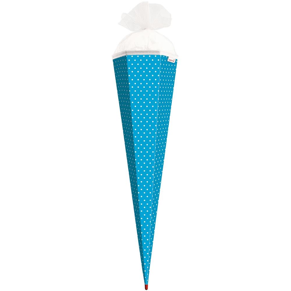 Roth Schultüte-Rohling/Basteltüte, pazifikblau mit weißen Punkten, 85cm, eckig, Rot(h)-Spitze, mit Tüllverschluss (weiß)