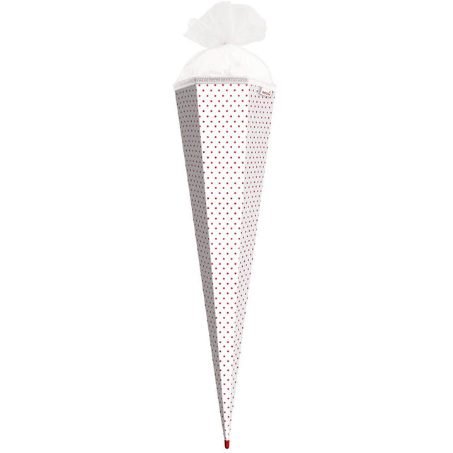 Roth Schultüte-Rohling/Basteltüte 85 cm Weiß mit roten Punkten – Tüllverschluss, Rot(h)-Spitze